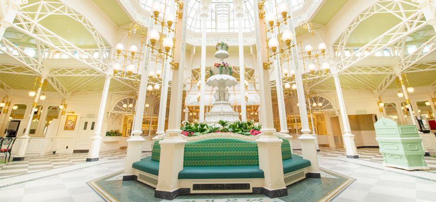 パークに入ってすぐのワールドバザールを抜け、左側に進んだシンデレラ城前のプラザに面した場所に位置しています!ヴィクトリア朝様式のガラス張りの外観が特徴です!