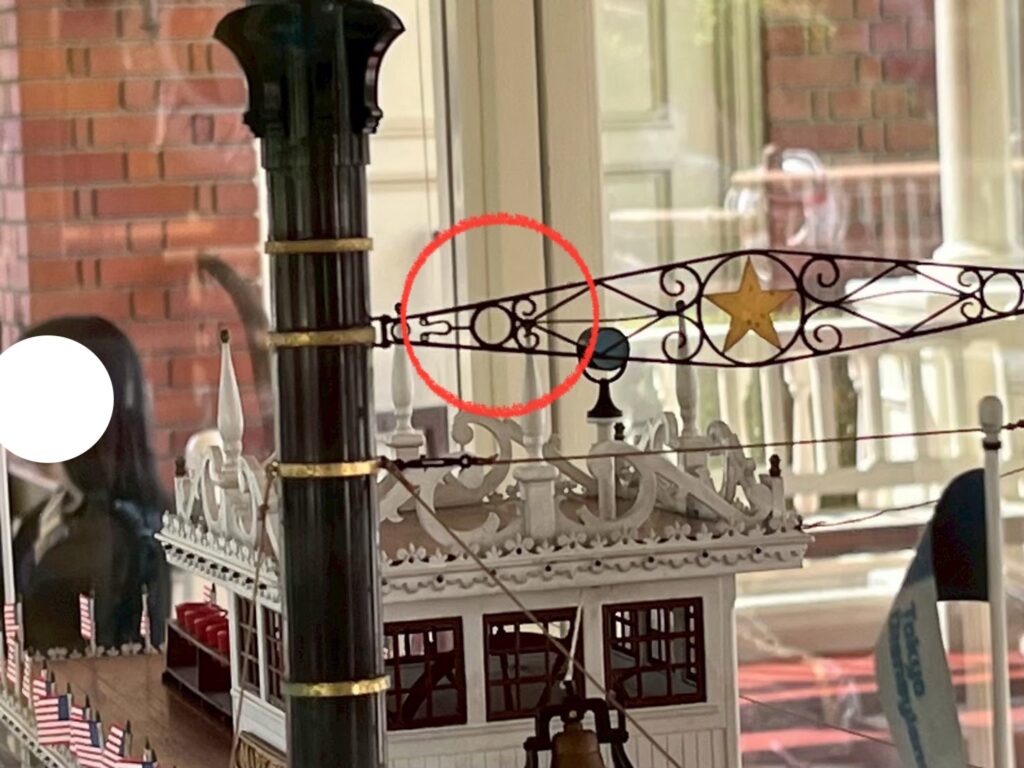 蒸気船マークトウェイン号の外観の船の模様にて隠れミッキーを発見しました!